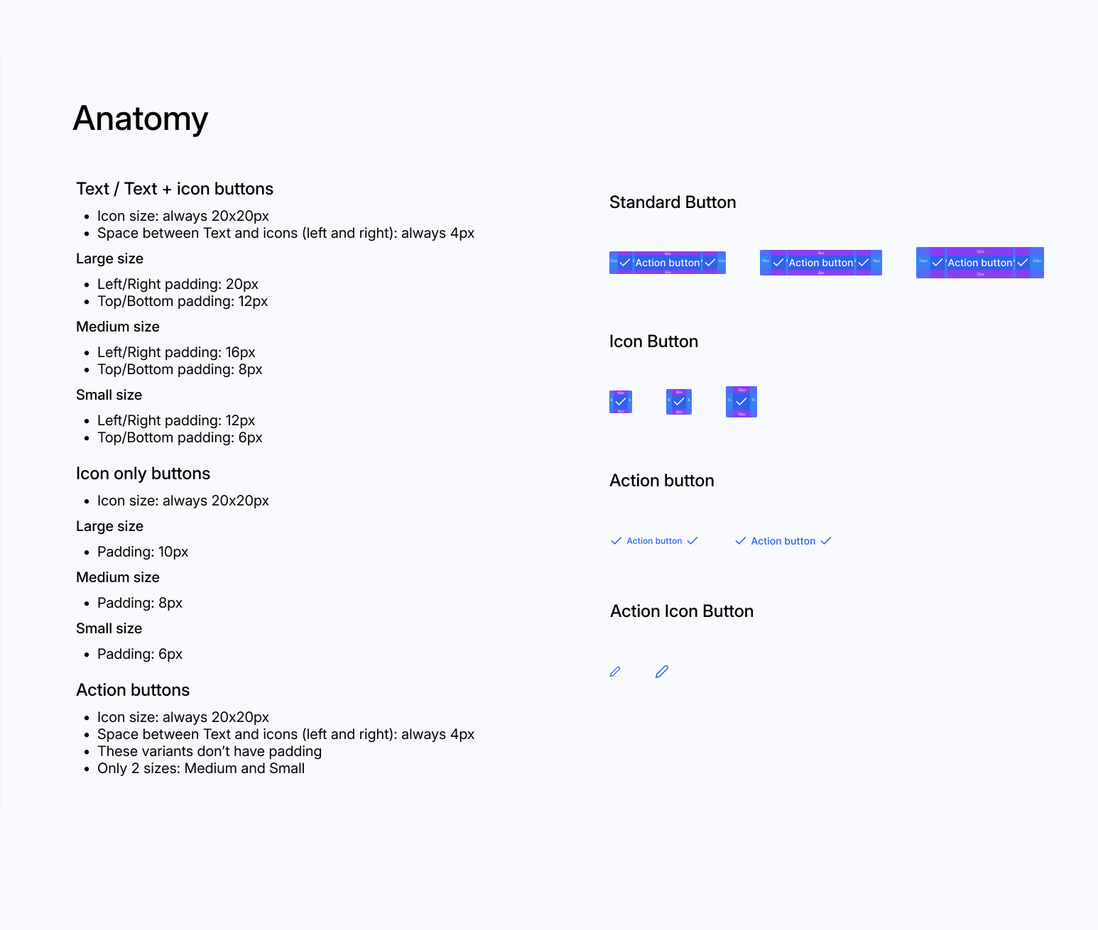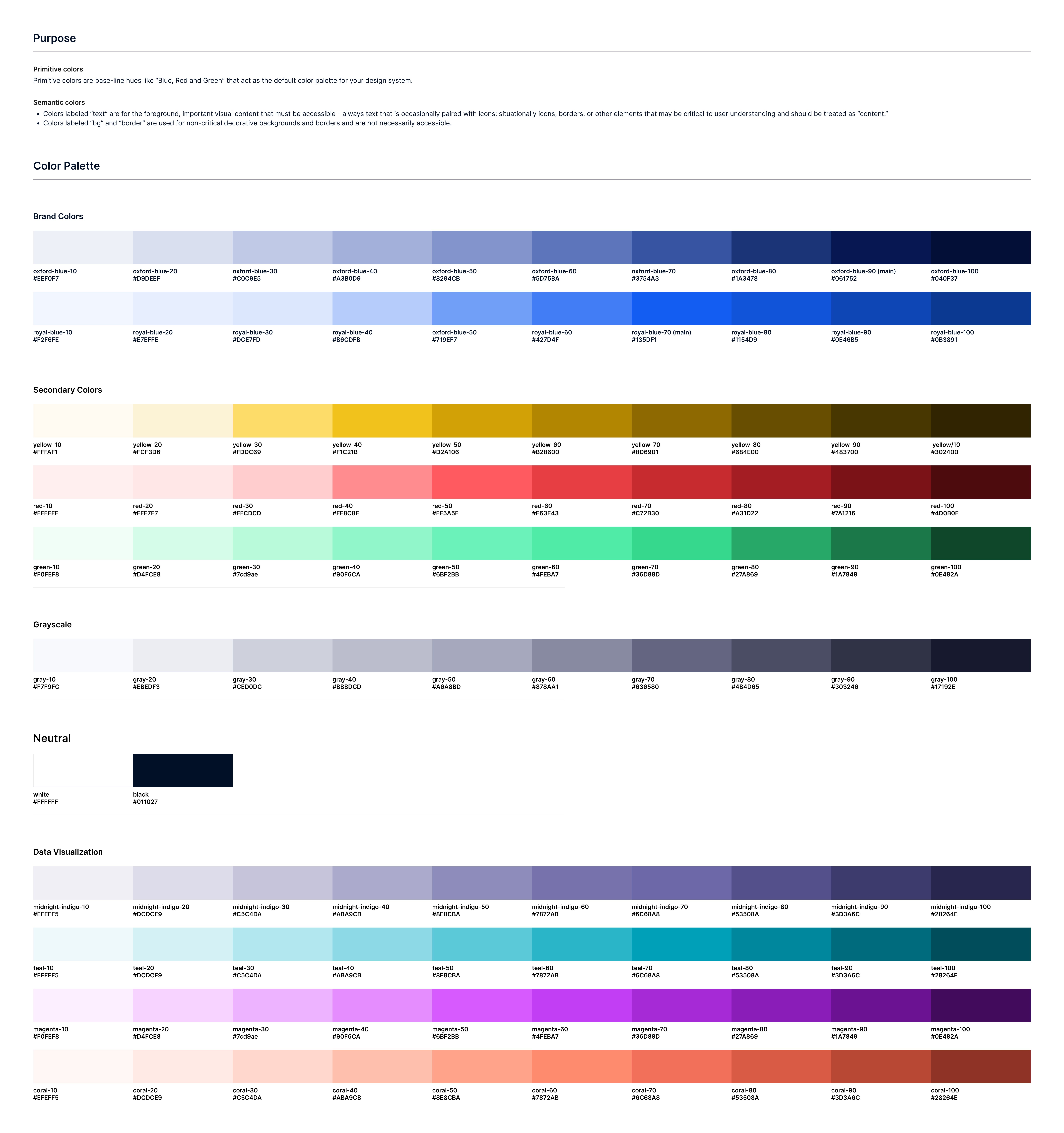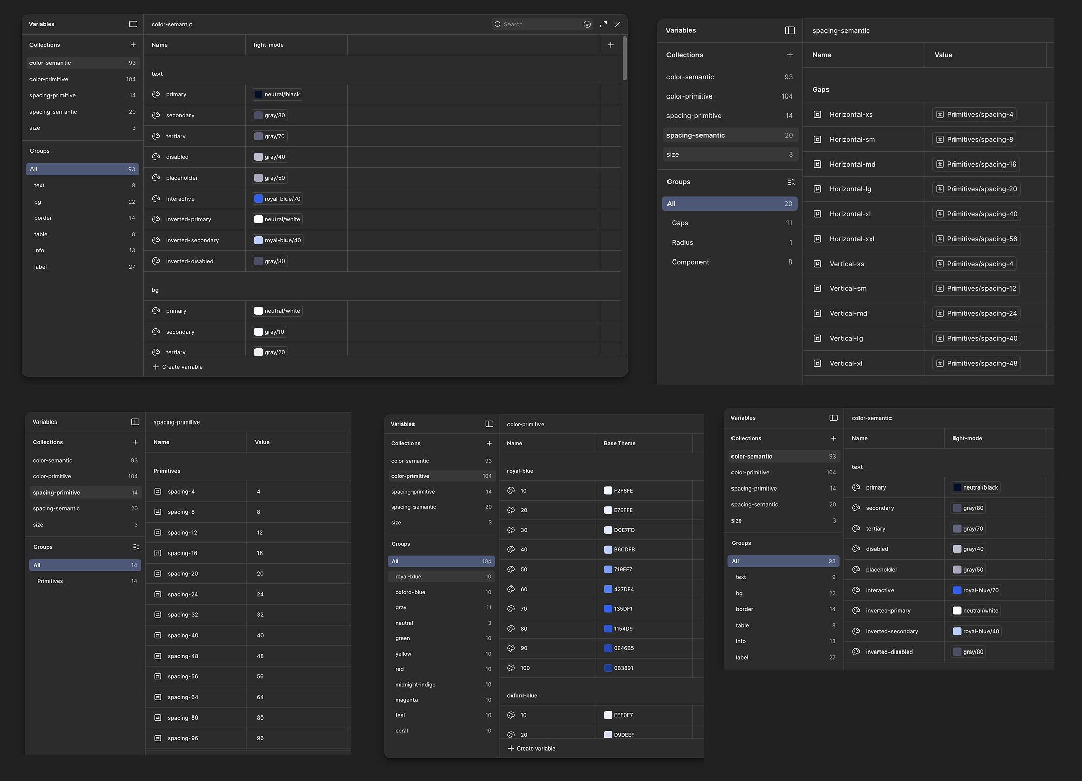 The strategy was to build the Design System from foundations first — defining color, spacing, typography, layout rules, and accessibility standards — before creating components. This approach ensured that every component would be built on top of a predictable, scalable, and maintainable token architecture.